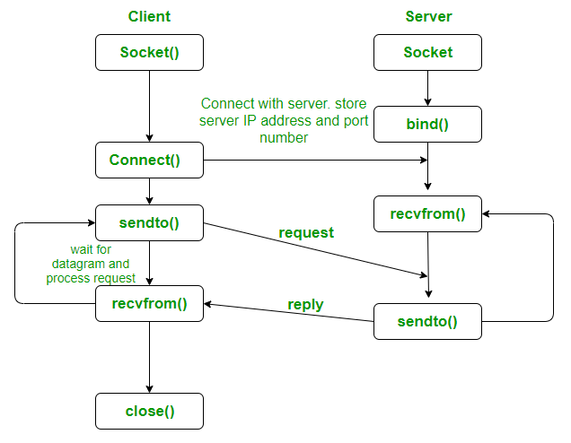 .. 좀 더 첨언을 하자면 connect()를 쓰면 sendto() 대신에 TCP에서 사용하는 send()를 쓸 수 있습니다.