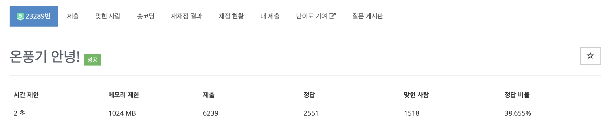 현재의 인덱스에서 다음 인덱스로 갈 때의 방향이 온풍기의 방향과 같을 때 목적지에 도착했다고 판단하면 됩니다. 어쨌든 이렇게 시각적으로 표현했을 때 방향이 겹치는 부분을 확인할 수 있습니다. 우, 좌 / 상, 하로 나눠서 적절히 처리하면 되겠죠?
