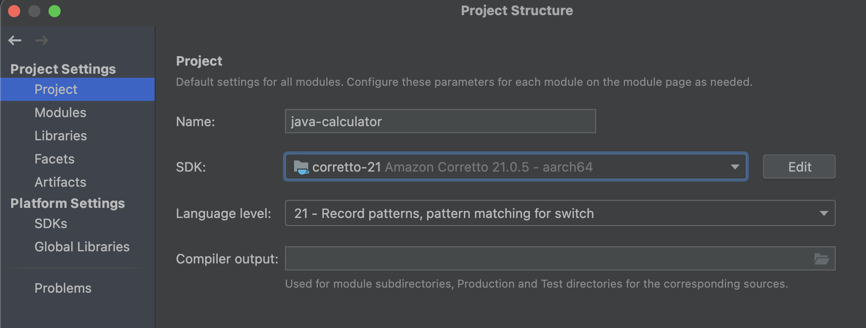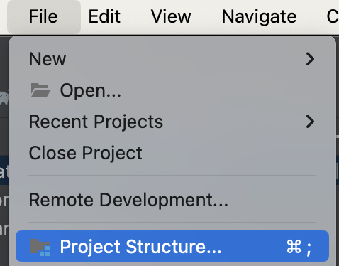 그 후, 같은 창에서 Project Settings -> Project를 통해 다운로드한 SDK로 설정합니다.
