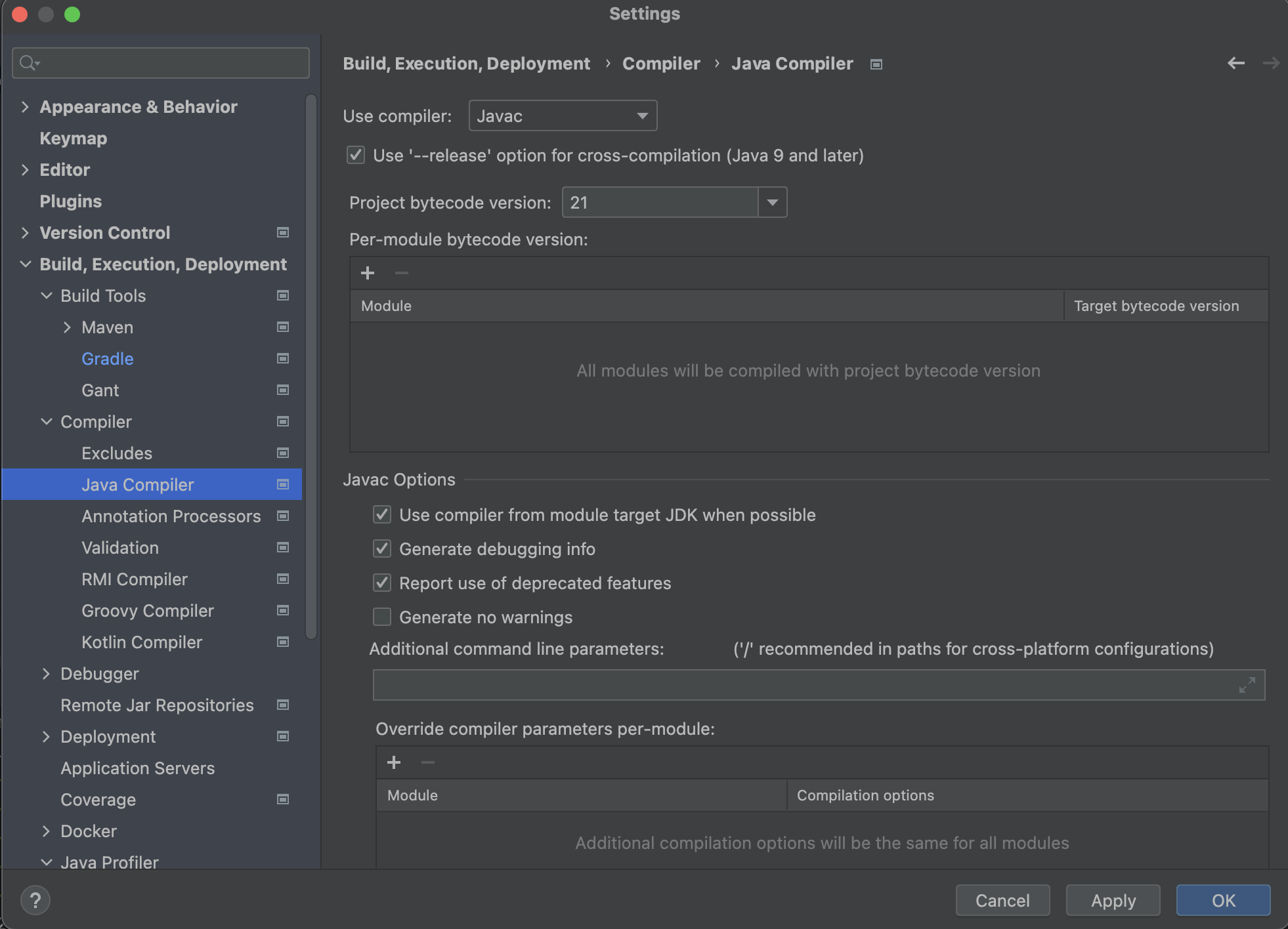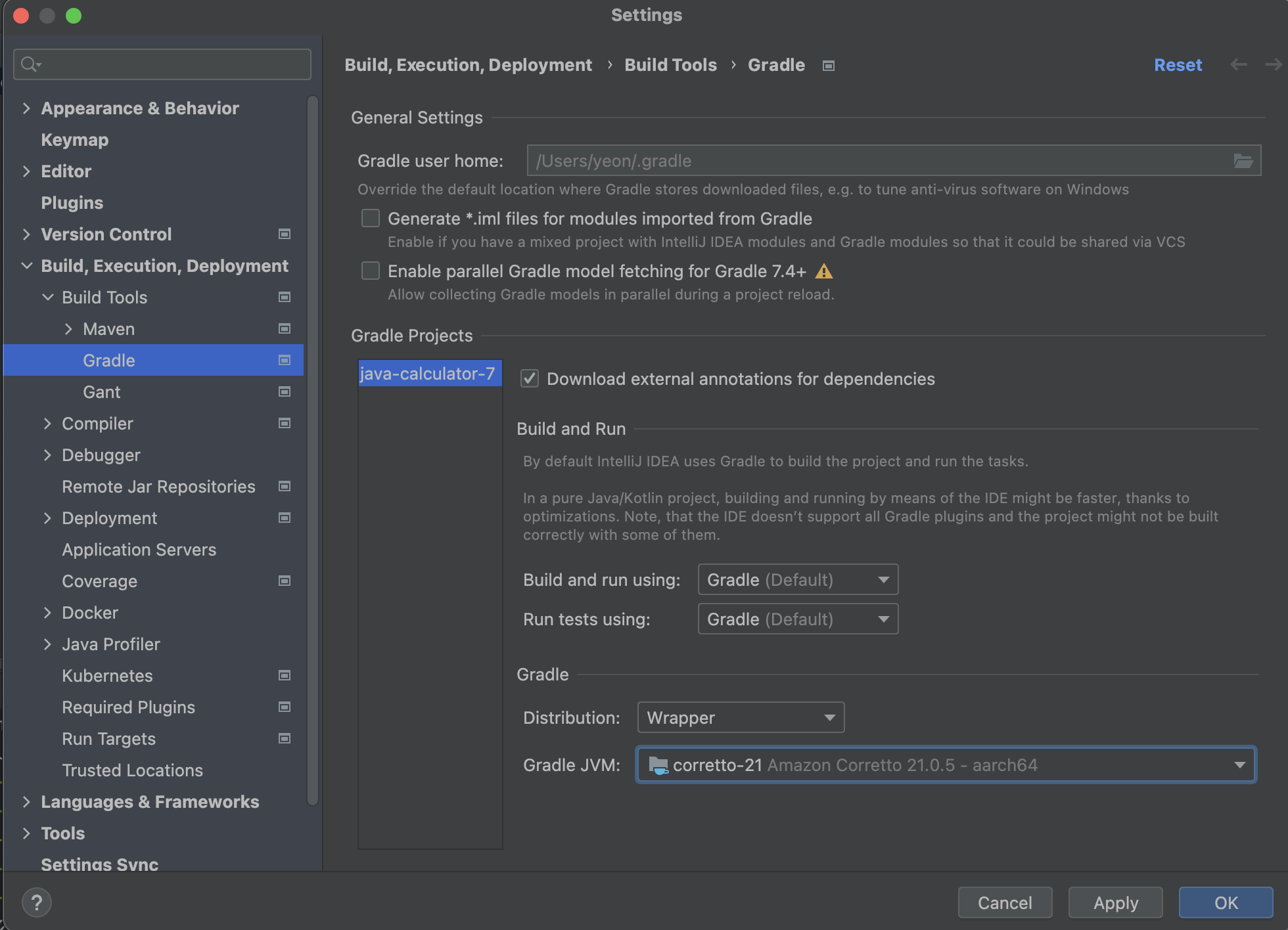 Build, Execution, Deployment -> Build Tools -> Gradle -> Gradle JVM에서 해당 버전으로 변경합니다.