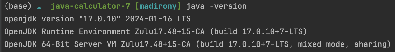 이제 터미널을 열고 명령어를 통해 현재 자바 버전을 확인합니다.
