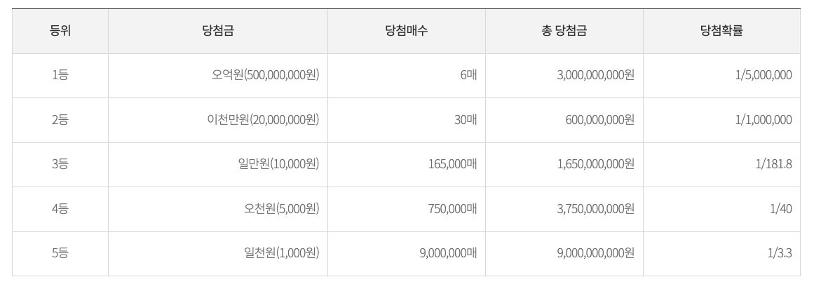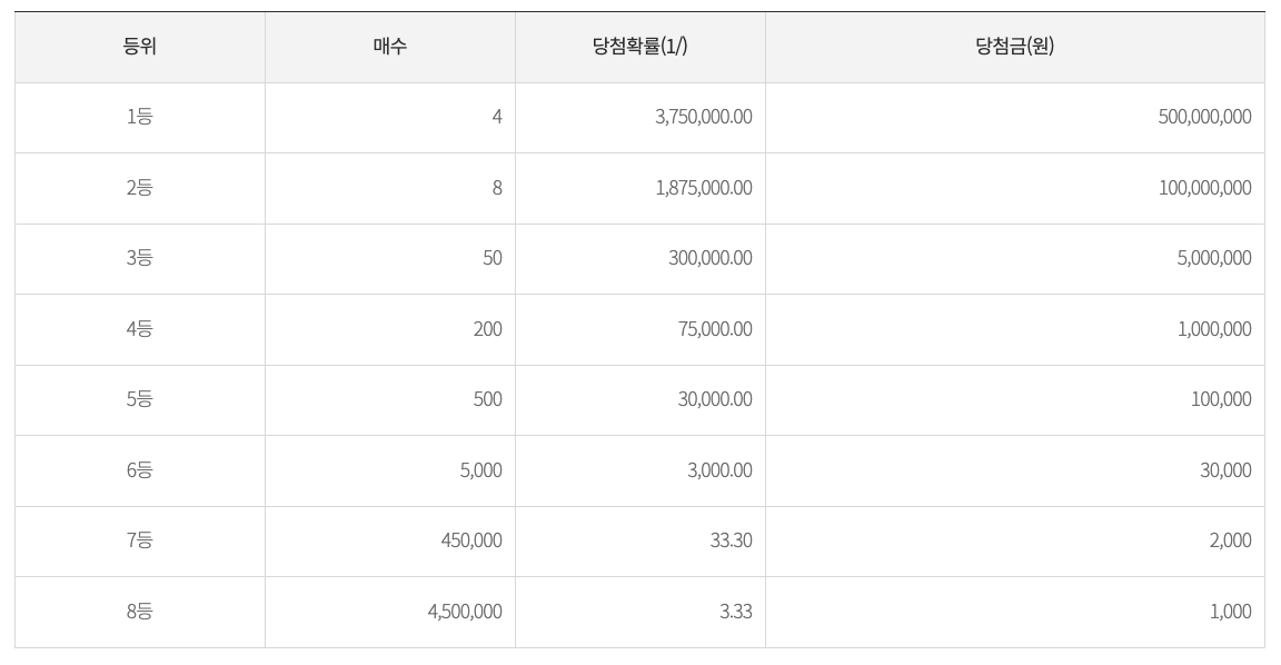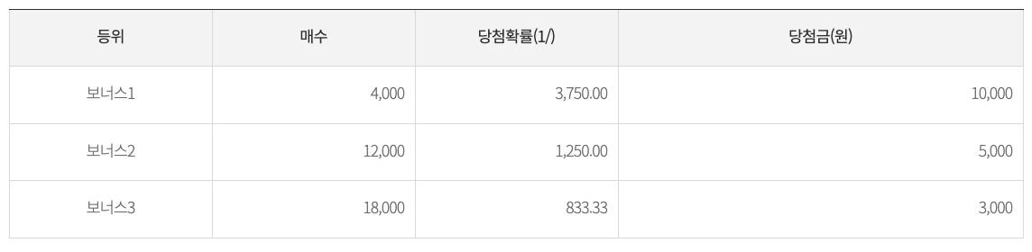 아.. 보너스 확률이 더 처참하네요. 일단 기댓값을 계산하기 위해서는 각 등위의 기댓값을 구한 뒤 합산하는 식으로 구해봅시다.