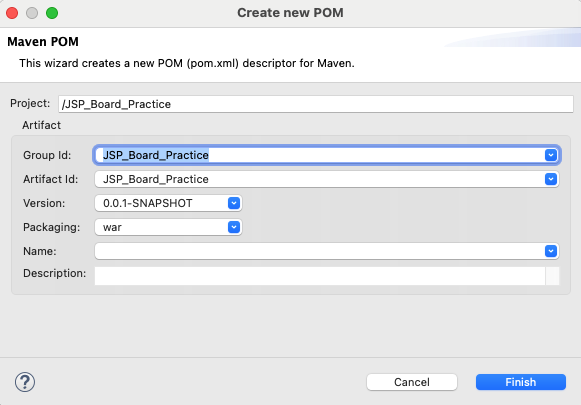 프로젝트의 설정이라던가 의존성 같은 것들은 pom.xml(Project Object Model)에 정의합니다.