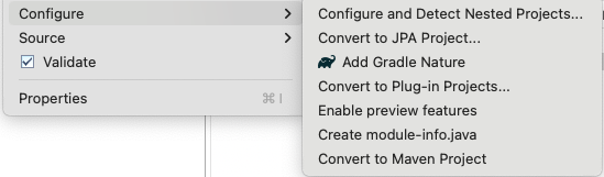 그전에 먼저 Maven Project로 전환해 보도록 합시다. Maven은 흔히 Spring을 다룰 때 사용하던 Gradle과 마찬가지로 빌드 관리 도구입니다. 정해진 Lifecycle에 의해 작업을 수행하고, 전반적인 프로젝트 관리 기능을 포함하고 있습니다.