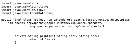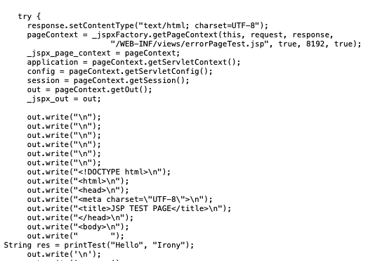 스크립틀릿과 같은 경우는 서블릿의 _jspService() 메서드 내부에 위치하게 됩니다. (요청 처리 로직 자리)