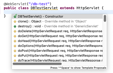 그 후, HttpServlet을 상속받을 것인데, 하위 클래스는 반드시 최소 한 개 이상의 메서드를 override 해야 합니다.